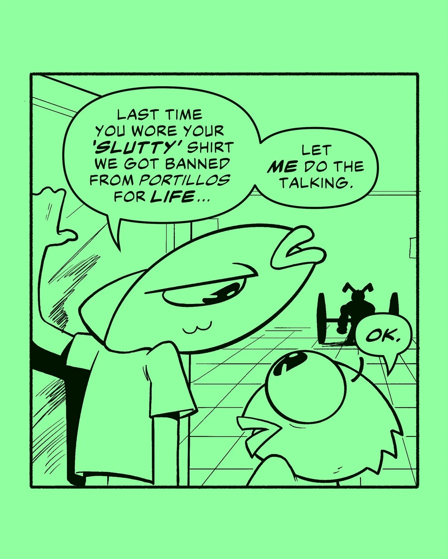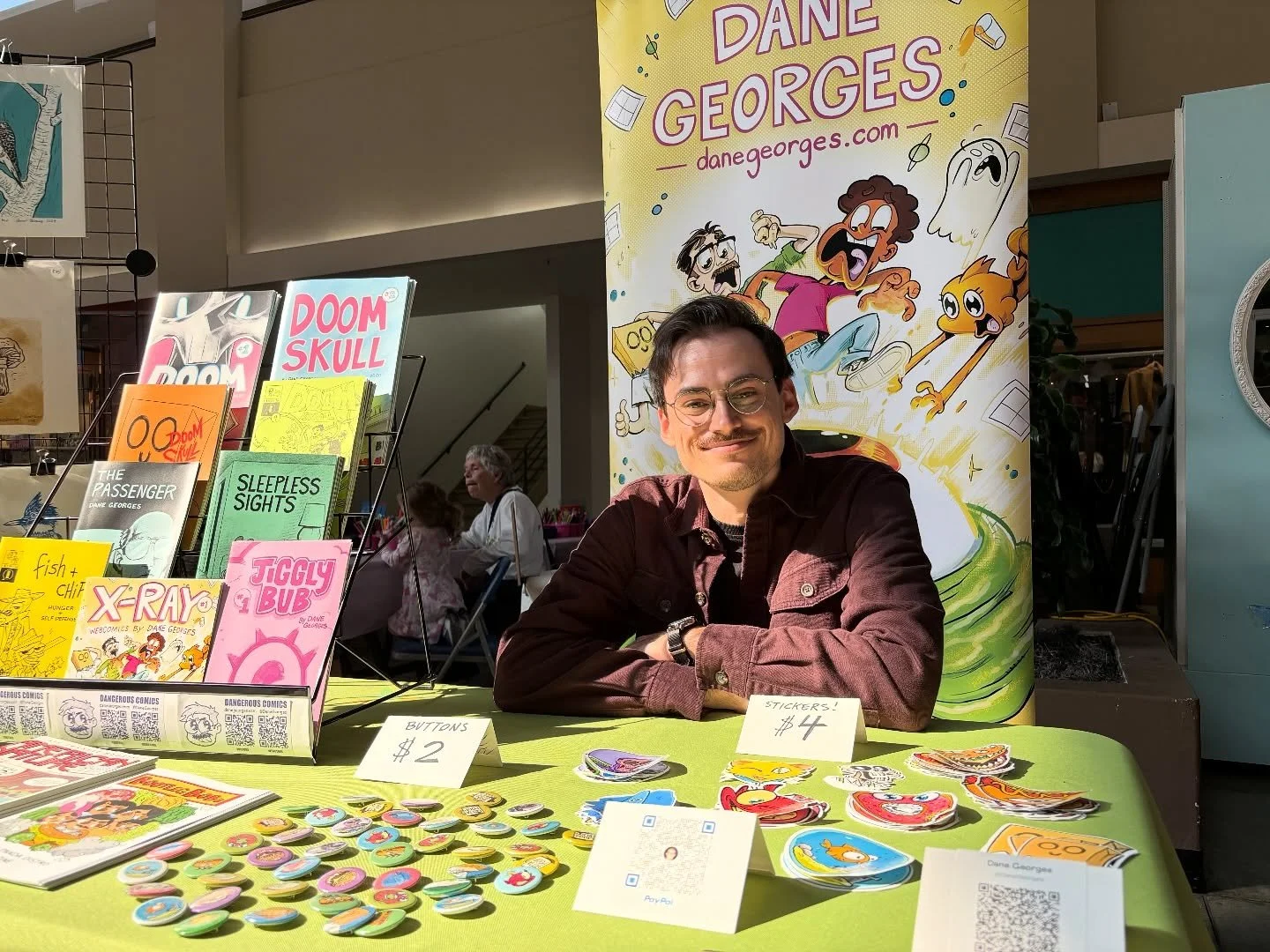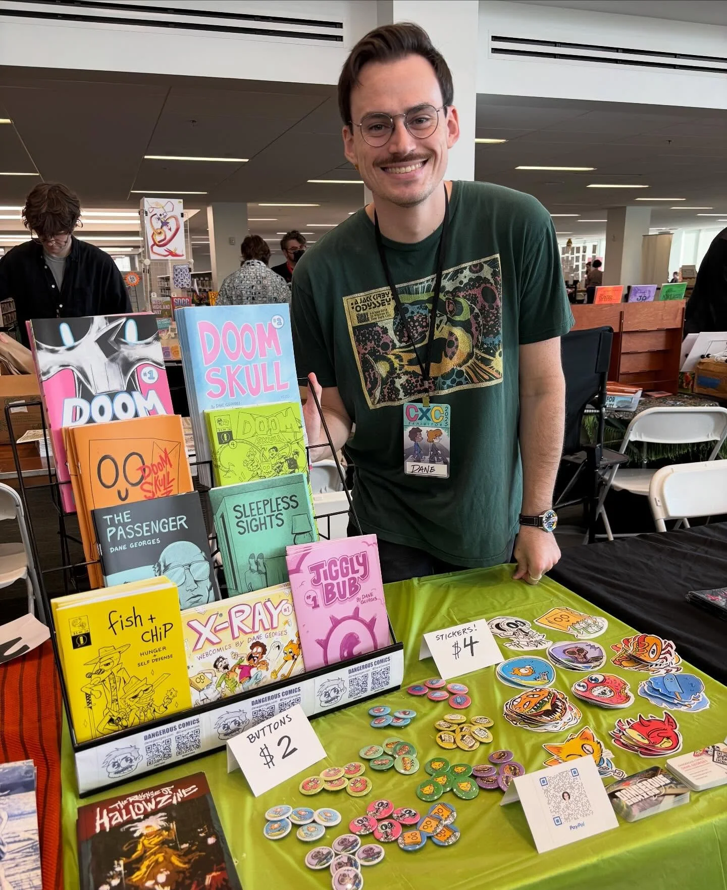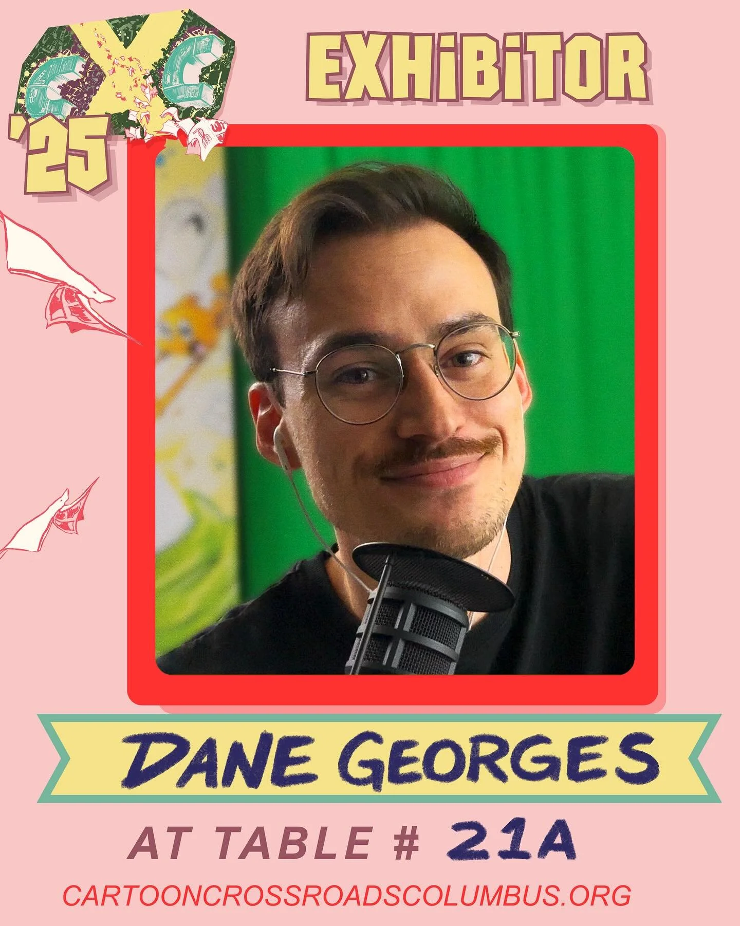 Dane Georges is a designer by day and a cartoonist by night! He creates strange, humorous, and existential comics about outcastsโlike a sentient wad of gum questioning its existence, an ex-supervillain working at a grocery store, and two hapless roommates struggling to survive in the big city. On his YouTube channel, Dangerous Comics, he reviews indie comics and explores the history of cartooning.