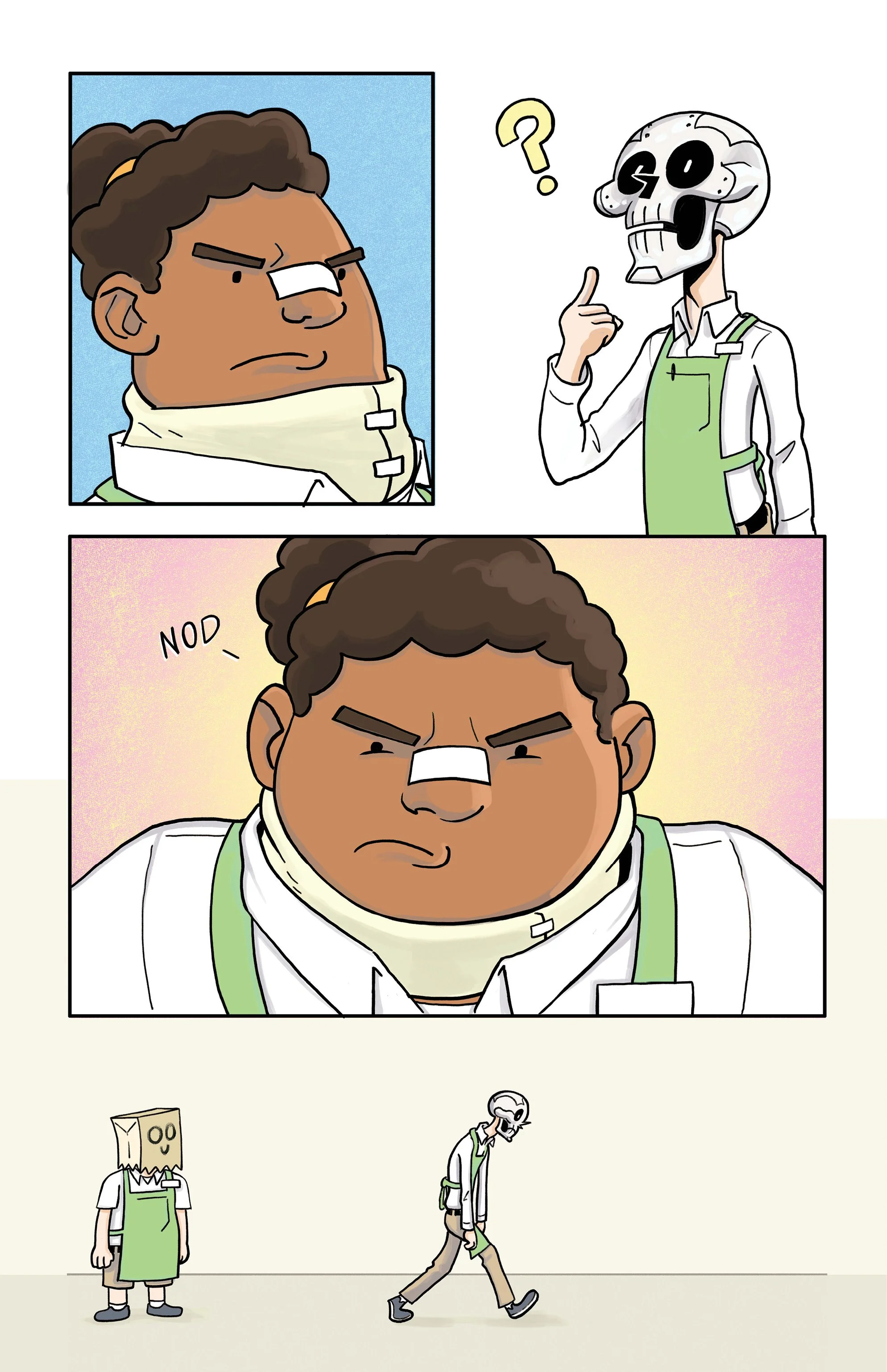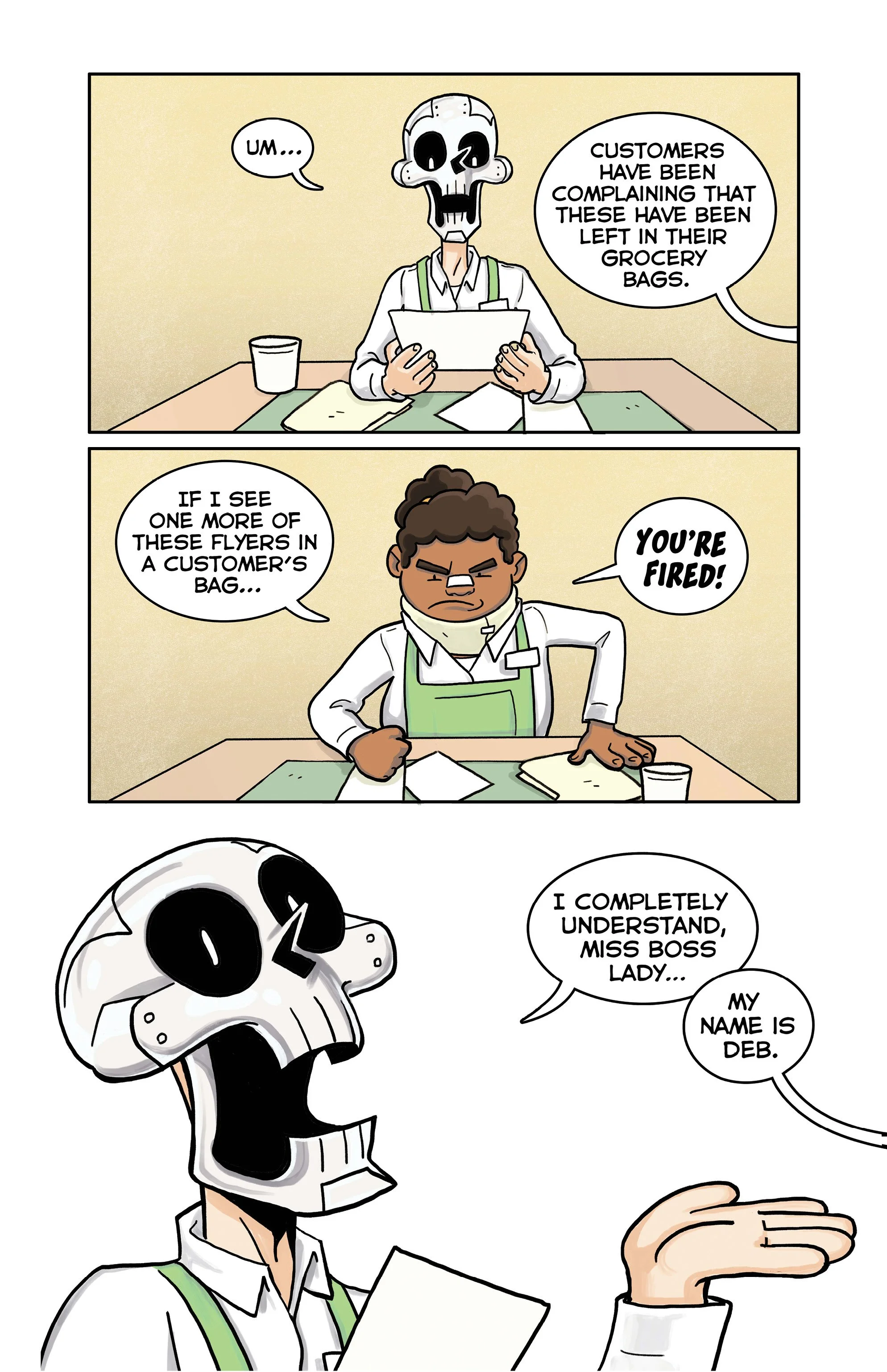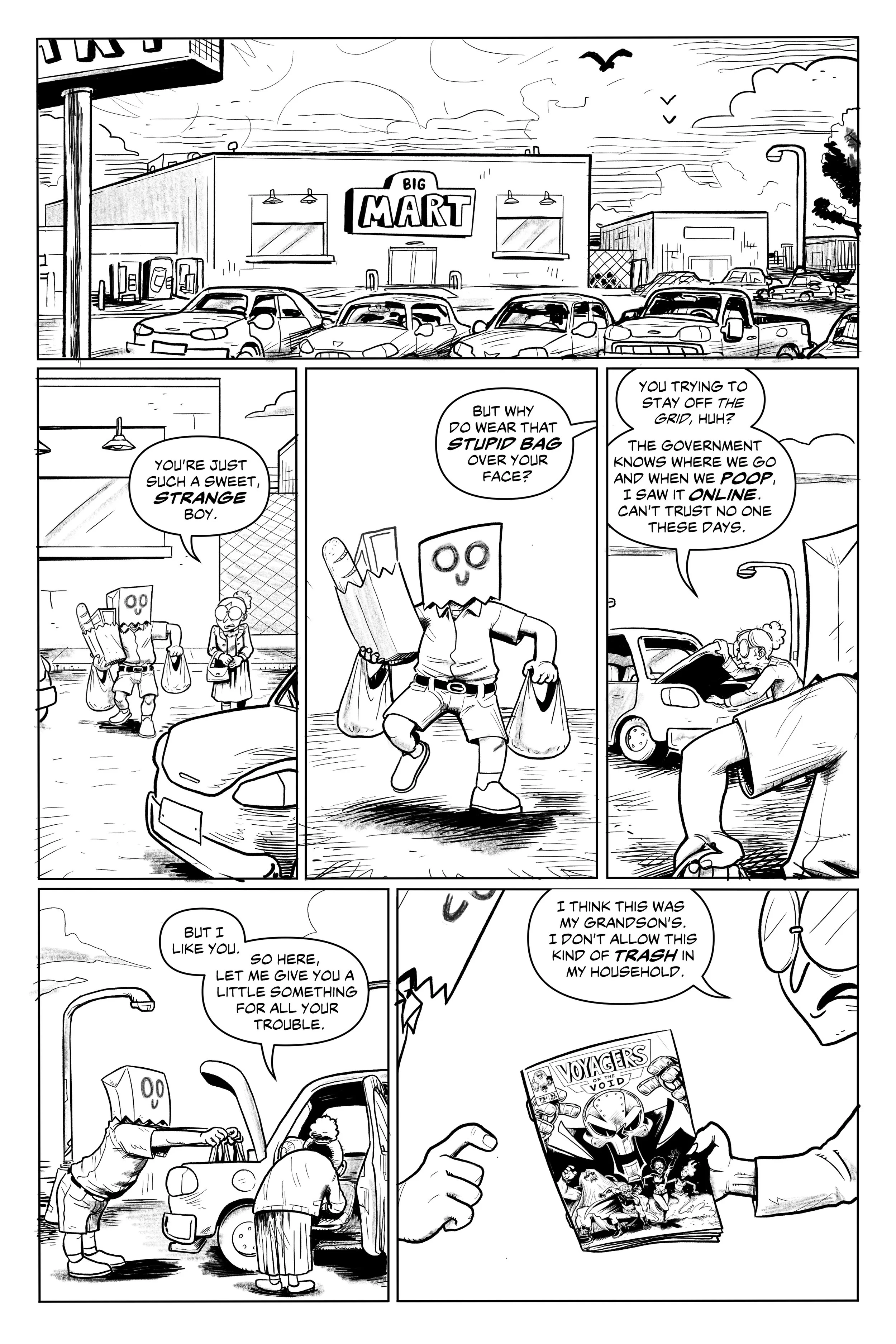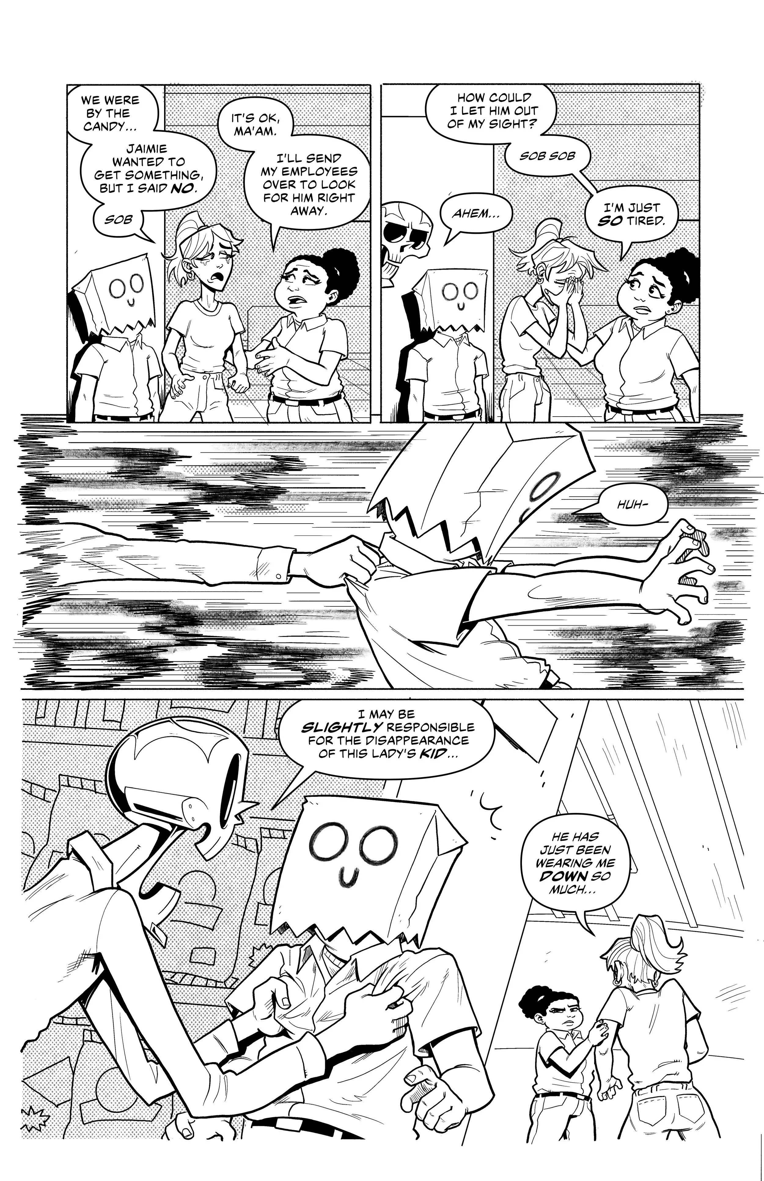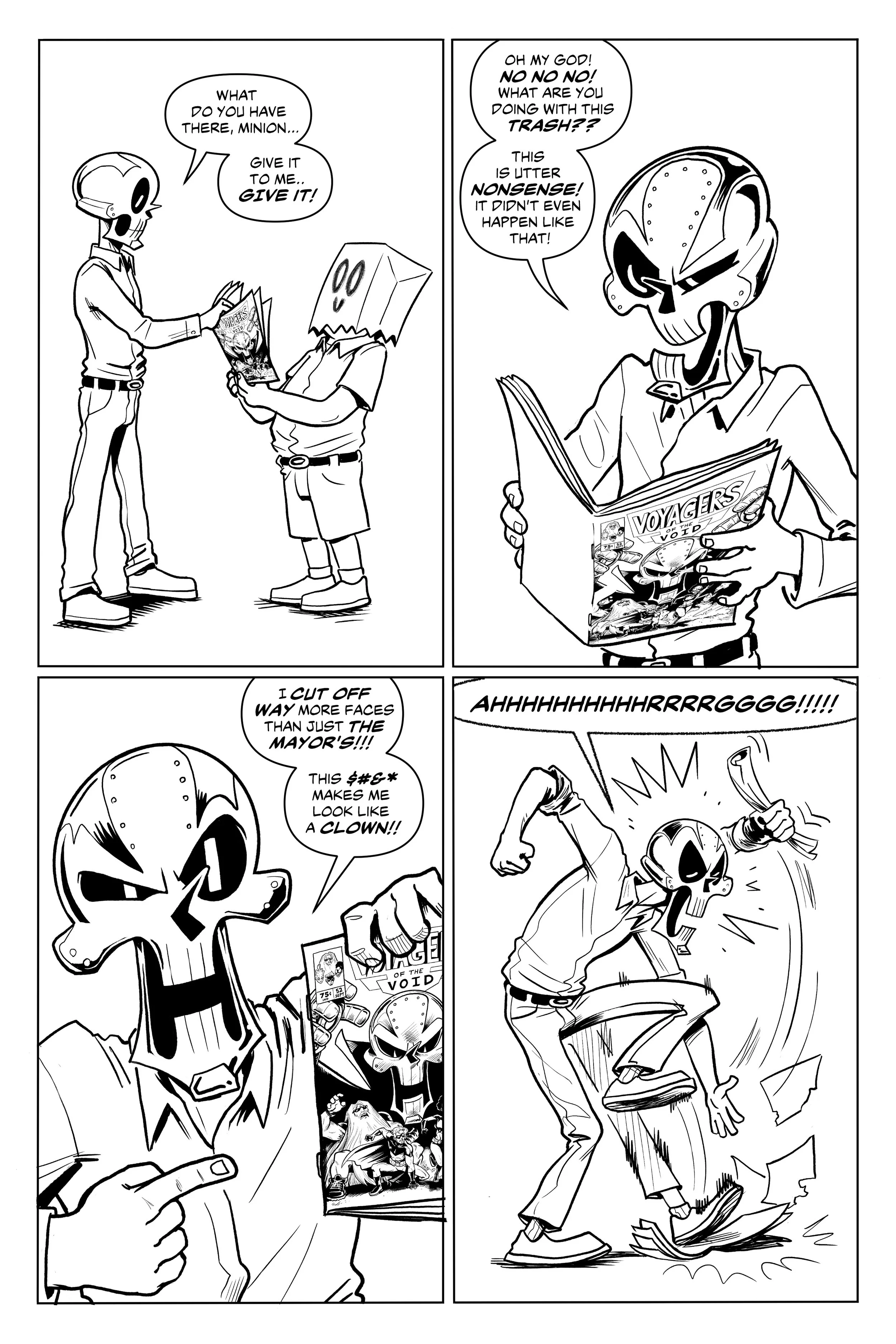 An ex-super villain named ‘Doom Skull’ begins working at the supermarket Big Mart with his minion, ‘Bag Boy’.