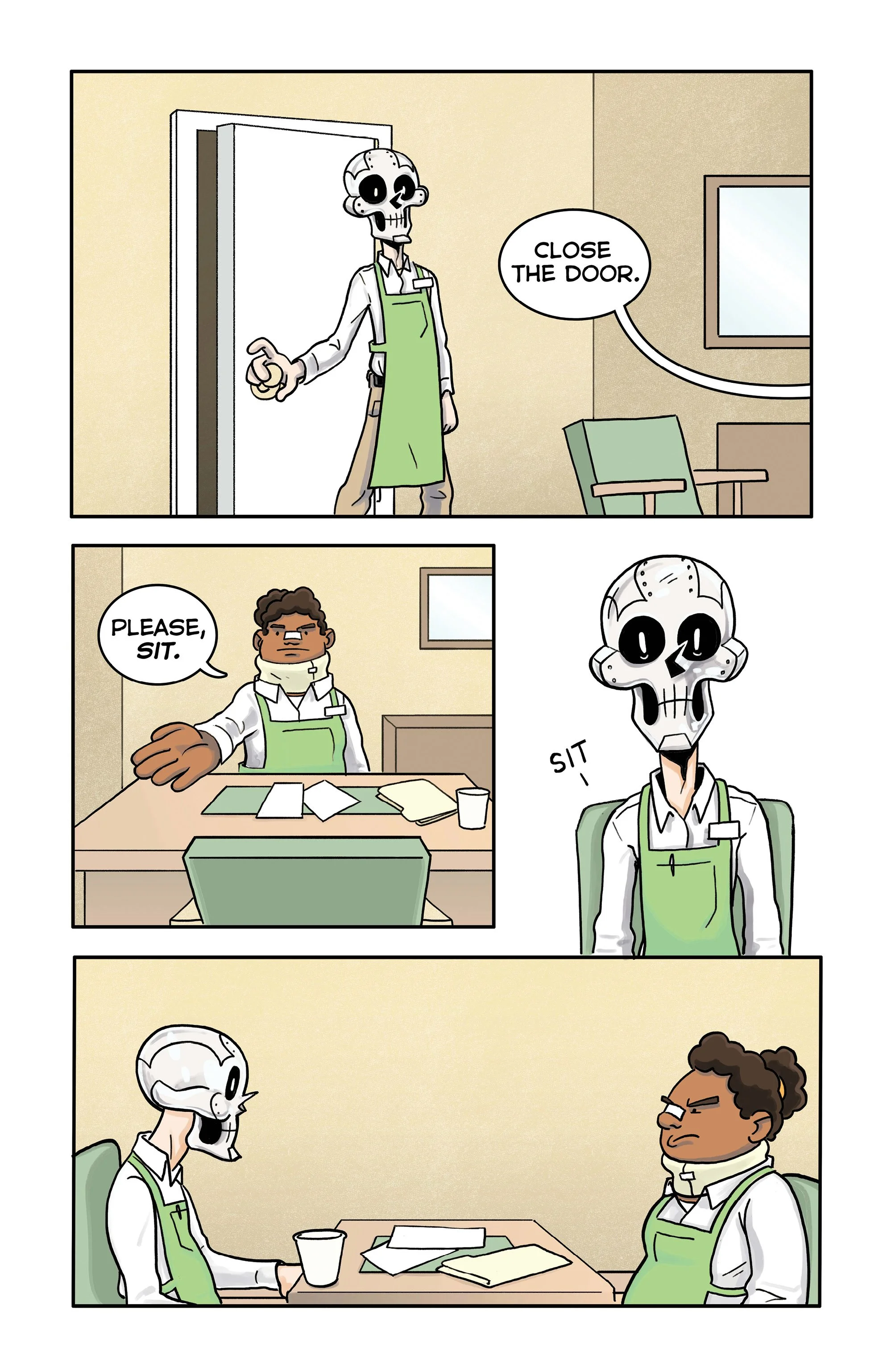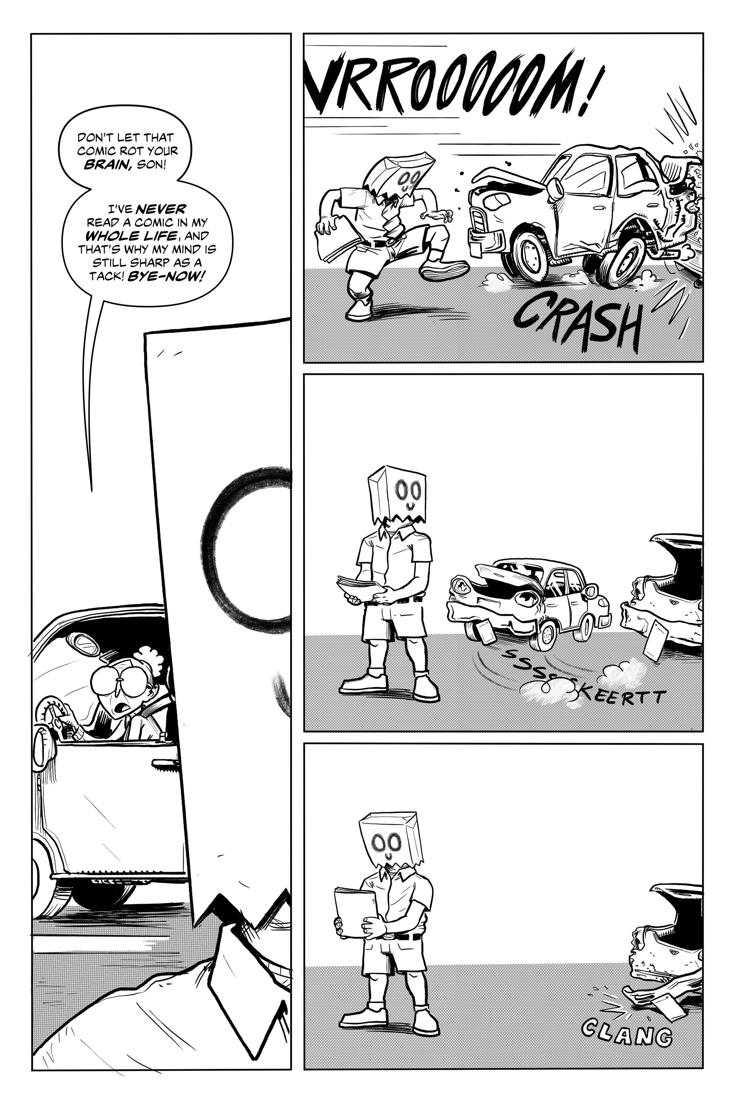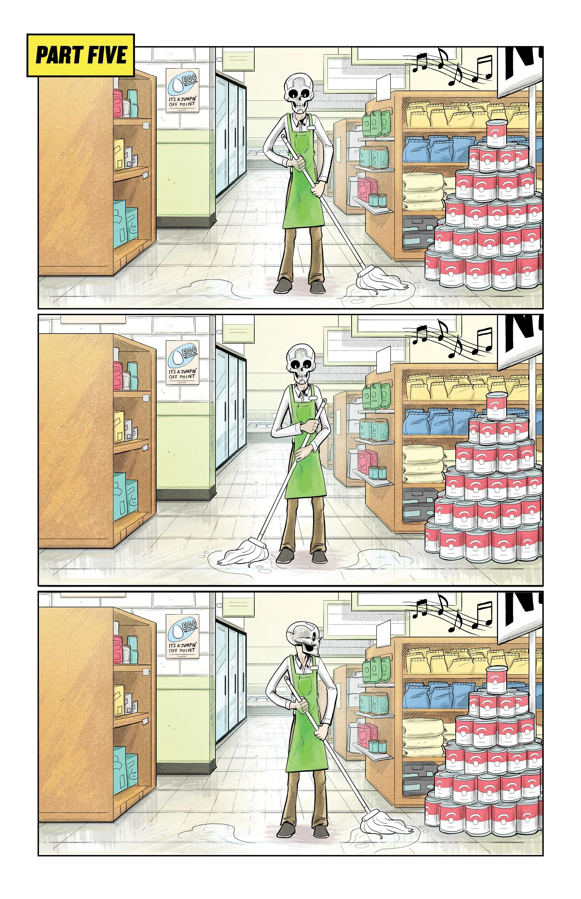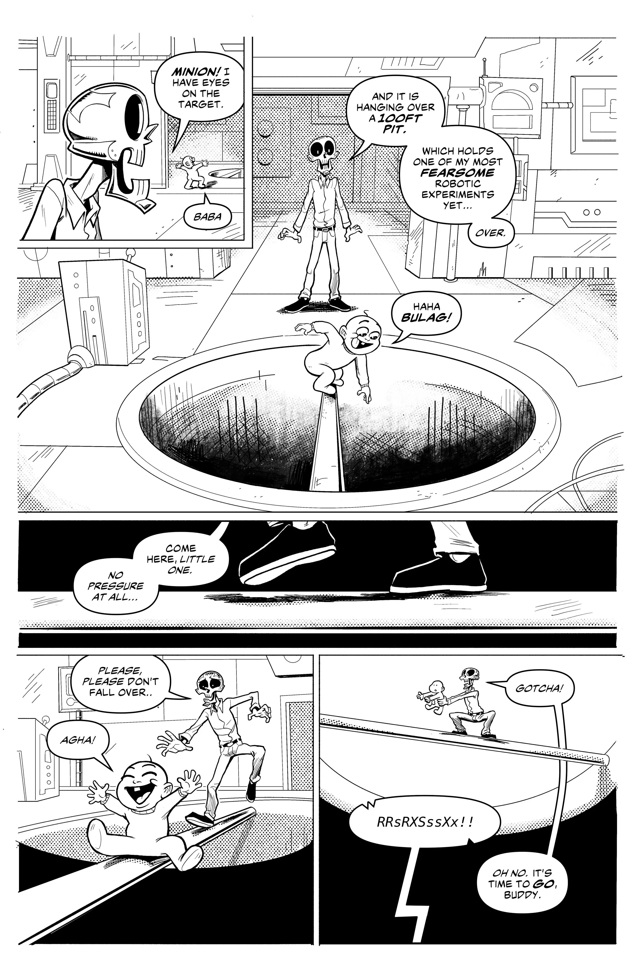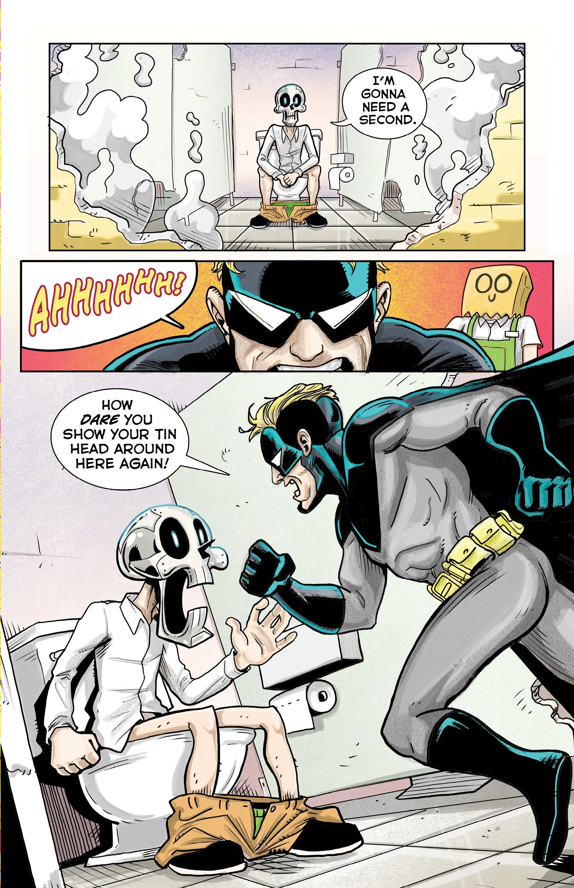 An ex-super villain named ‘Doom Skull’ begins working at the supermarket Big Mart with his minion, ‘Bag Boy’.