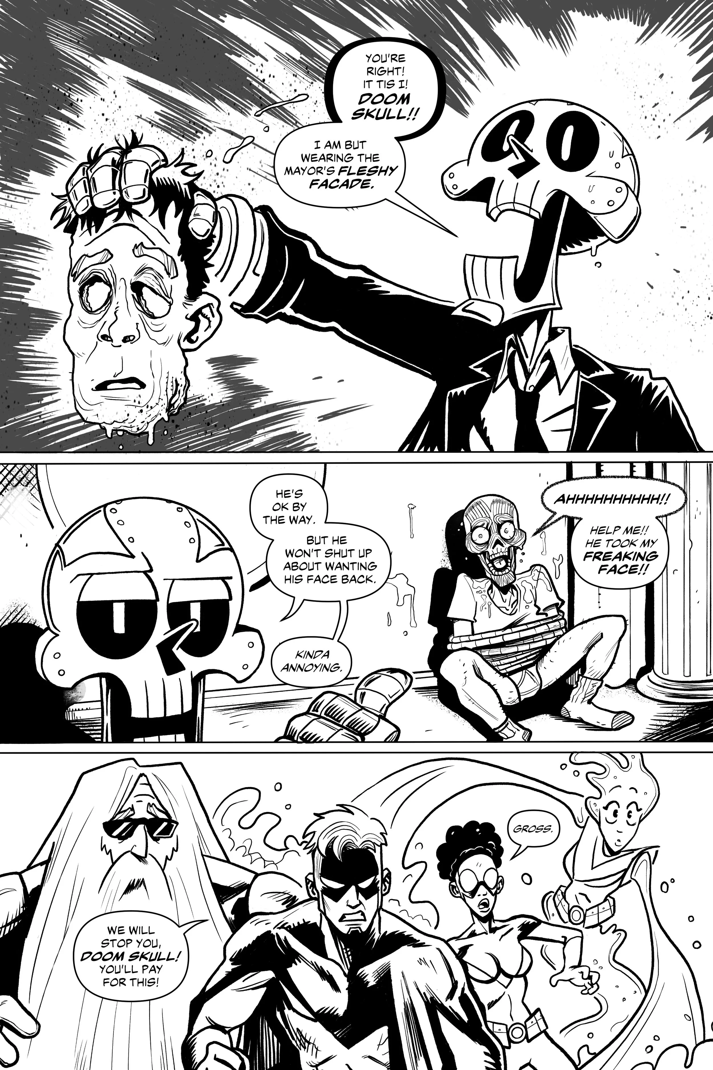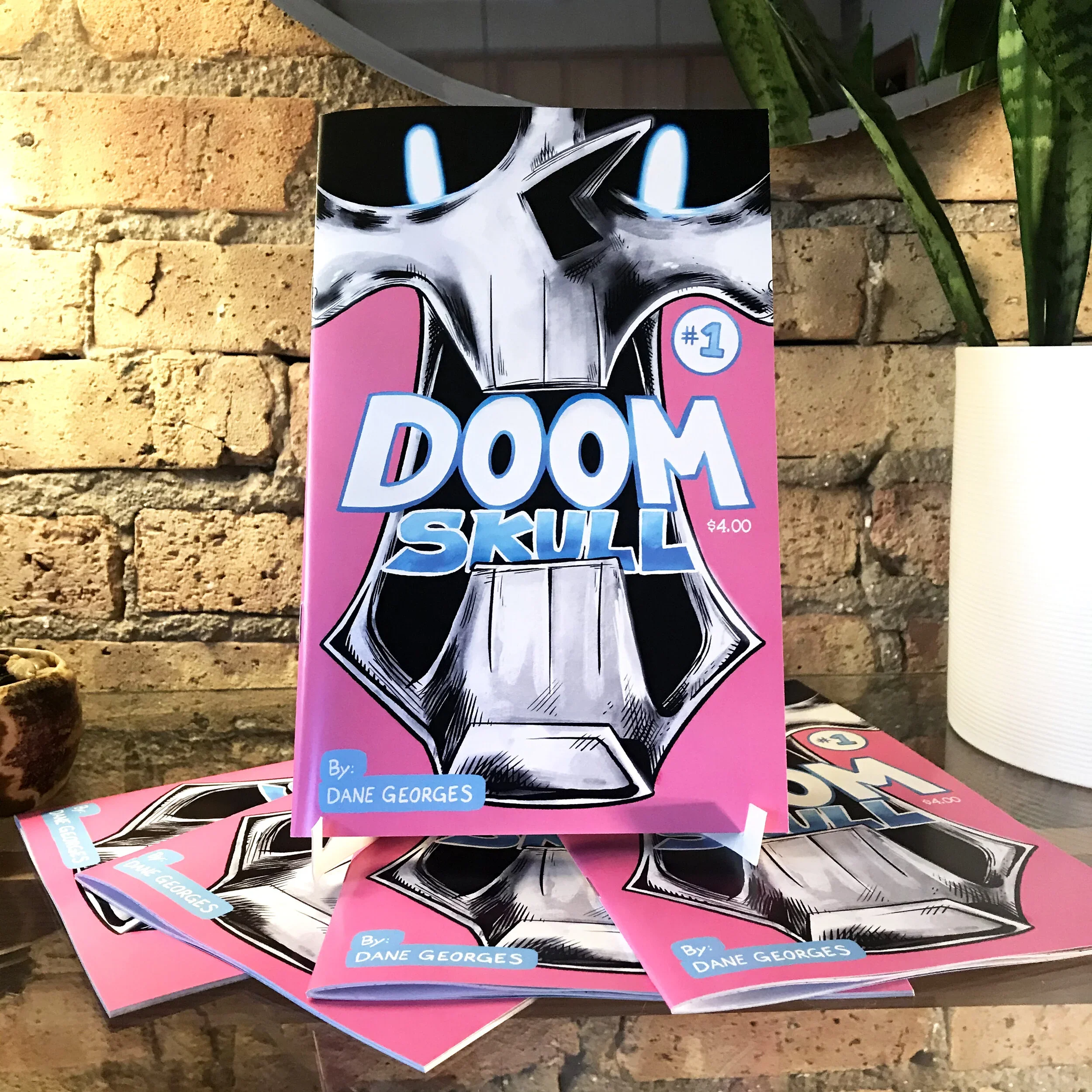 Starting as a webcomic in 2016, Doom Skull is my longest-running series. Below are images of the first four printed covers.